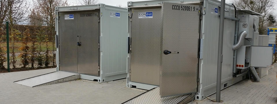 NEWS Click here CONRAIL climate container  Adjustable temperature range from -25 degrees Celsius to + 30 degrees Celsius, optionally up to +80 degrees Celsius -40 degrees Celsius to +60 degrees Celsius with an accuracy of +/- 0.5 degrees Celsius in a 20’ climate container. Adjustable relative humidity from 10 to 90 percent/100 percent. Special control. Area of application: medical and pharmaceutical industry, aging processes, packaging of medical and healthcare industry, chemical industry and in the automotive industry for aging processes of tyres. OFFERS Click here GermanVersion