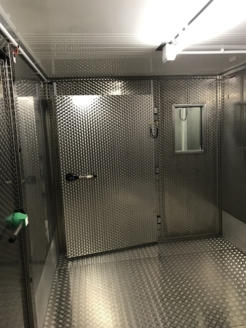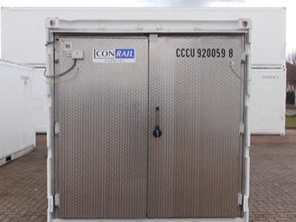 NEWS Click here Container freeze store doors Conrail stainless-steel doors  freeze store doors with door panel heating, stainless steel with circular brush, upper door lock. All as freeze store doors or deep freeze store doors. Emergency release function = can be opened from inside.  Single-winged or double winged doors.  More economical: plastic-coated steel OFFERS Click here GermanVersion